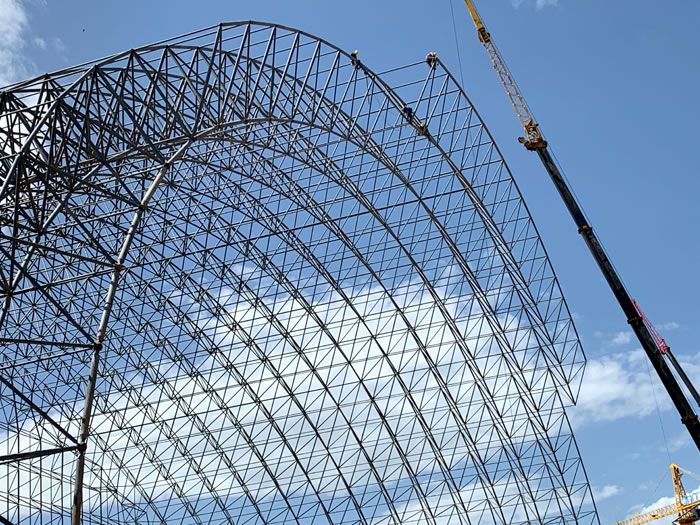 (2)网架加工前应对现场尺寸进行复测,确认无误后方可进行加工、安装;网架制作、运输、安装应遵守《空间网格结构技术规程》JGJ7-2010、《钢网架常德螺栓球节点》JG/T 10-2009、《钢网架常德螺栓球节点用高强度螺栓》 GB/T 16939-2016、《常德钢结构常德工程常德施工规范》 GB50755-2012、《常德钢结构常德工程常德施工质量验收标准》 GB50205-2020。
